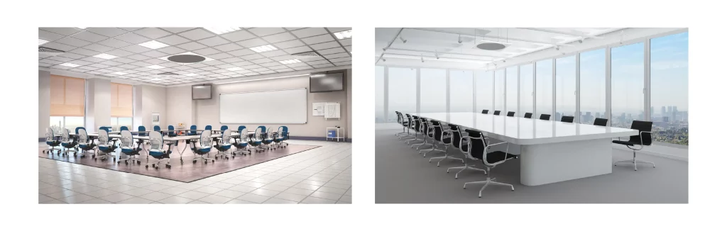 - Equitable Audio Coverage: Positioning overhead ensures a similar distance from the mic for all participants, resulting in consistent volume and clarity regardless of where someone sits.