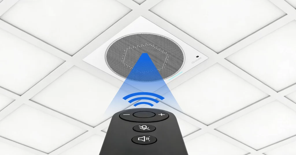 - Standout Feature: Unlike its competitors, it often includes a physical IR Remote for quick manual muting and volume control, making it more user-friendly for non-technical staff. In addition, INFOBIT iSpeaker CM360 adopts industry-trending AI technology for noise cancellation and suppression. It also supports Voice-lift technology for up to 8x sound reinforcement regions.