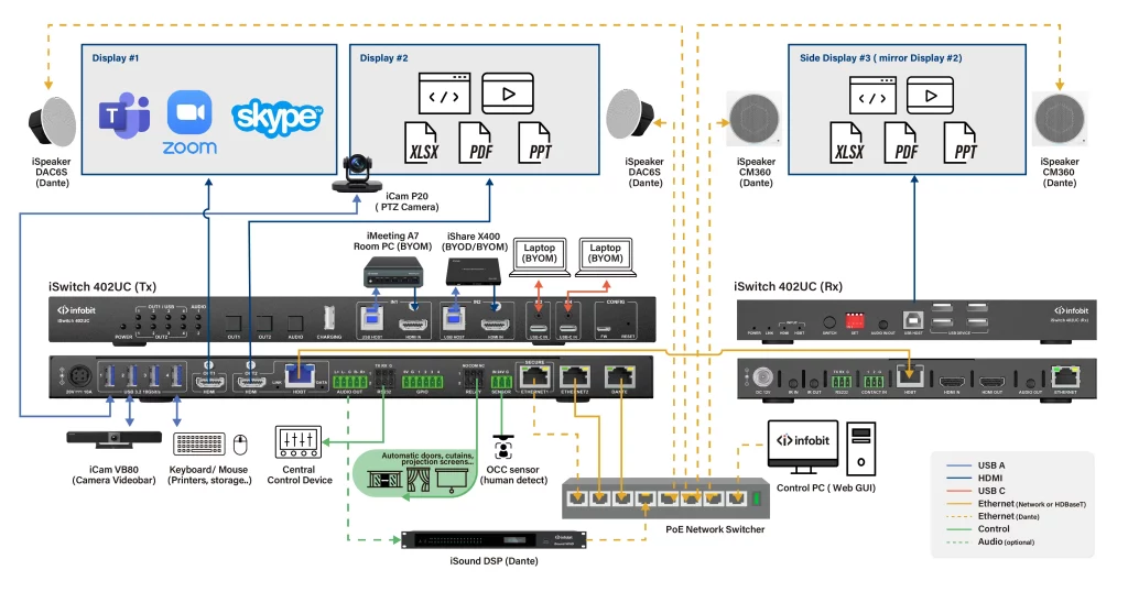 - Unlimited Cascading: Supports chaining multiple units via Dante for very large spaces.